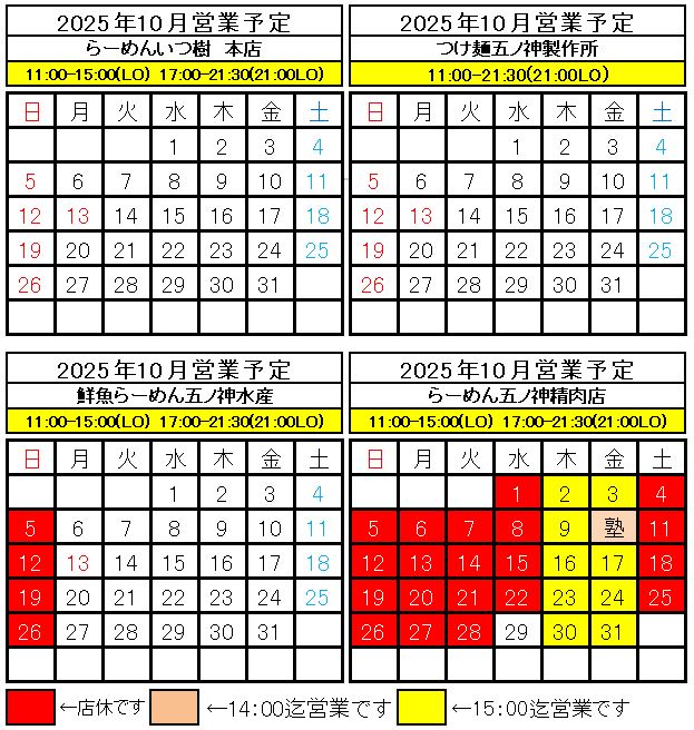 2025年10月全店舗営業予定です -