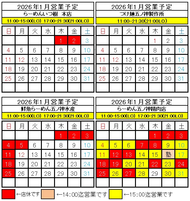 2026年1月全店舗営業予定です -